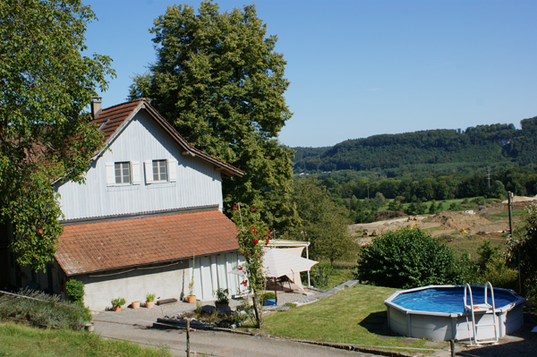 "imbrand8"Ein wunderschöner Fleck von Erlinsbach, bewohnen wir Königs seit bald 23 Jahren. Eigentlich könnte man es auch Villa Kunterbunt nennen, so vieles hat sich in all den Jahren hier abgespielt.Anfangs bauten wir mit viel Energie und Schweiss auf der Stirn die völlig verkommene Hütte zu einem ansehnlichen Bauernhaus um. Und was gehört zu einem Bauernhaus? Natürlich Tiere, Hühner, Enten, Katzen, Schafe, der Esel Josy und bis heute weiden noch vier Pferde auf den Wiesen rund ums Haus. Ein Gemüsegarten machte uns fast zu Selbstversorgern, das Unkraut wuchs schneller als der Salat und die Eier aus dem Hühnerstall klauten uns die Krähen oder die Füchse und selbst der Esel hielt uns mit seiner Sturheit ständig auf Trab. So konzentrierten wir uns auf eine neue Herausforderung